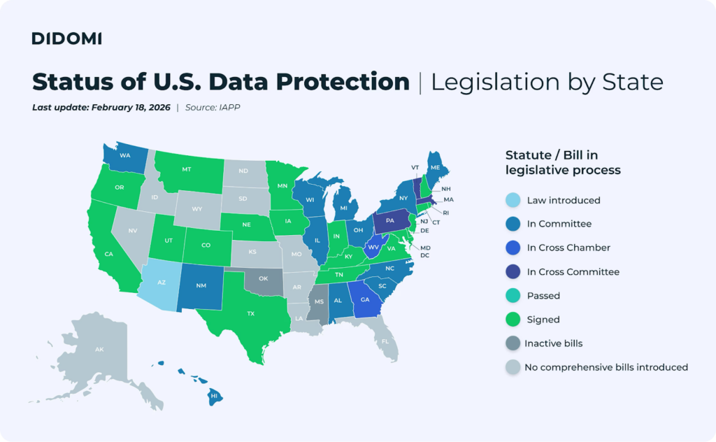 This week, we’re sharing some useful Didomi links and resources to bookmark, starting with an overview of the U.S. privacy legal landscape:
